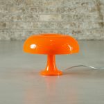 The Artemide Nessino lamp, a modern reinterpretation of the iconic “Nesso” design, is a marvel of contemporary lighting. This compact table lamp, with its distinctive mushroom shape, seamlessly blends form and function. Its body and diffuser are crafted from high-quality thermoplastic resin, ensuring durability and a sleek finish. The Nessino features a striking color palette that complements various interior styles.