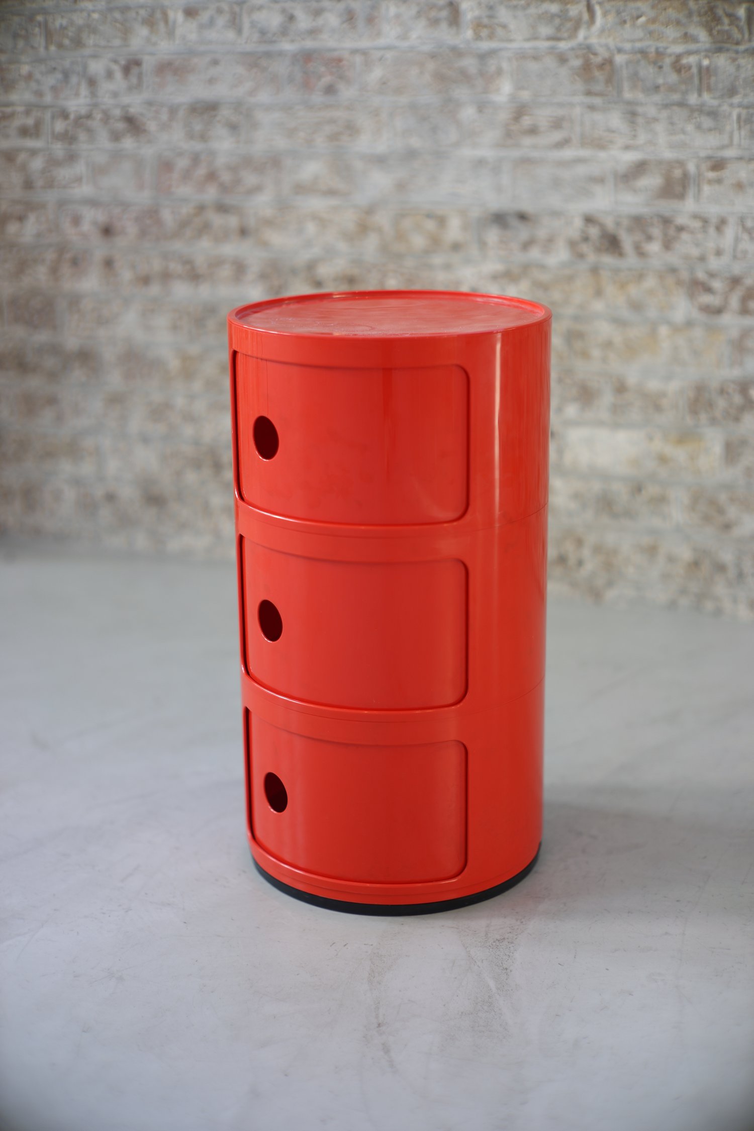 The Componibili by Anna Castelli is a timeless storage solution that seamlessly blends functionality and style. With its vibrant red hue, this iconic piece exudes a bold and modern aesthetic, adding a pop of color to any space. Its three-tier design offers versatile storage options, making it perfect for organizing everyday items or showcasing favorite decor pieces. Crafted with meticulous attention to detail, this classic design has stood the test of time, remaining a beloved choice for those seeking practicality without compromising on sophistication.